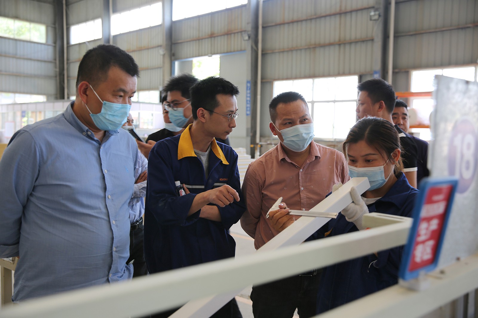 本次考察成行前,双方已经签署了战略合作意向,此次实地观摩主要是为双方后续对接、产品选型、品质管控、库存周转、交付周期等细节做精准对接。在各厂区车间内,车间负责人分别陪同讲解,悉心解答客户的疑惑。考察人员对科居先进完善的智能化设备、多品类产品、产品品质表示赞赏。曹惠祥经理是负责玛格家居工艺技术的,在考察过程中,他认真细致的观看了车间工作人员的操作步骤,不时停下来查看产品,从产品尺寸、制作工艺、板材的孔洞构建等多方面提出了专业的问题,并查看了现场的生产管理表单、质检记录,对部分工作的细节也提出了自己的管理经验,尤其是工艺细节方面做了一些简易的经验分享。